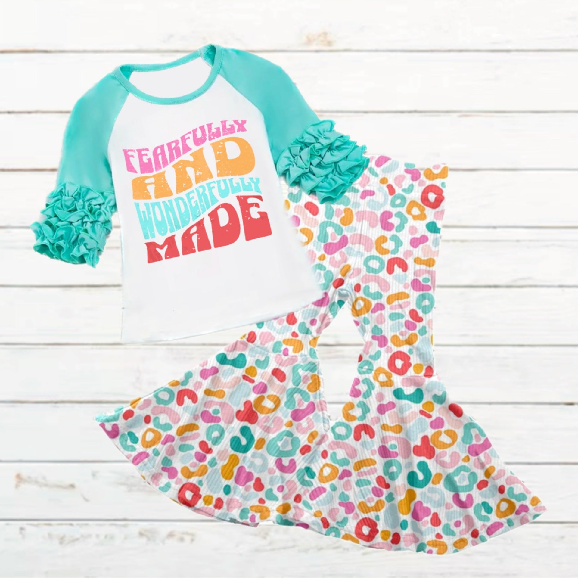 Experience comfort and style with our Fearfully and Wonderfully Made 2PC Set. Crafted from high-quality materials, this set offers a comfortable fit and a stylish design. Featuring vibrant animal print and inspiring scripture, this set is a must-have for those little girls appreciate comfort and fashion.