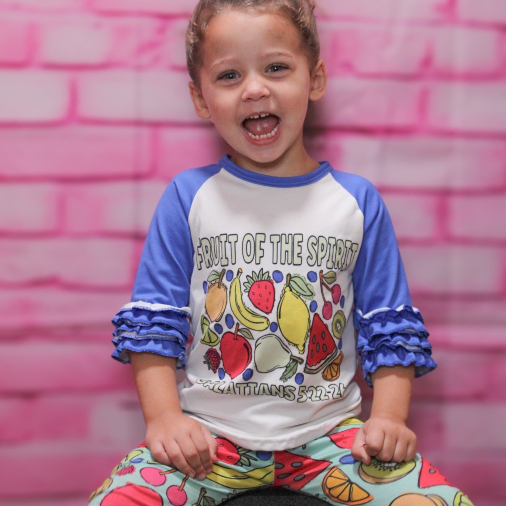 Experience the essence of spring with our Fruit Of The Spirit 2PC Set, showcasing vibrant colors, a comfortable fit, and a stylish design. Elevate your child's wardrobe with this bright and playful ensemble today!