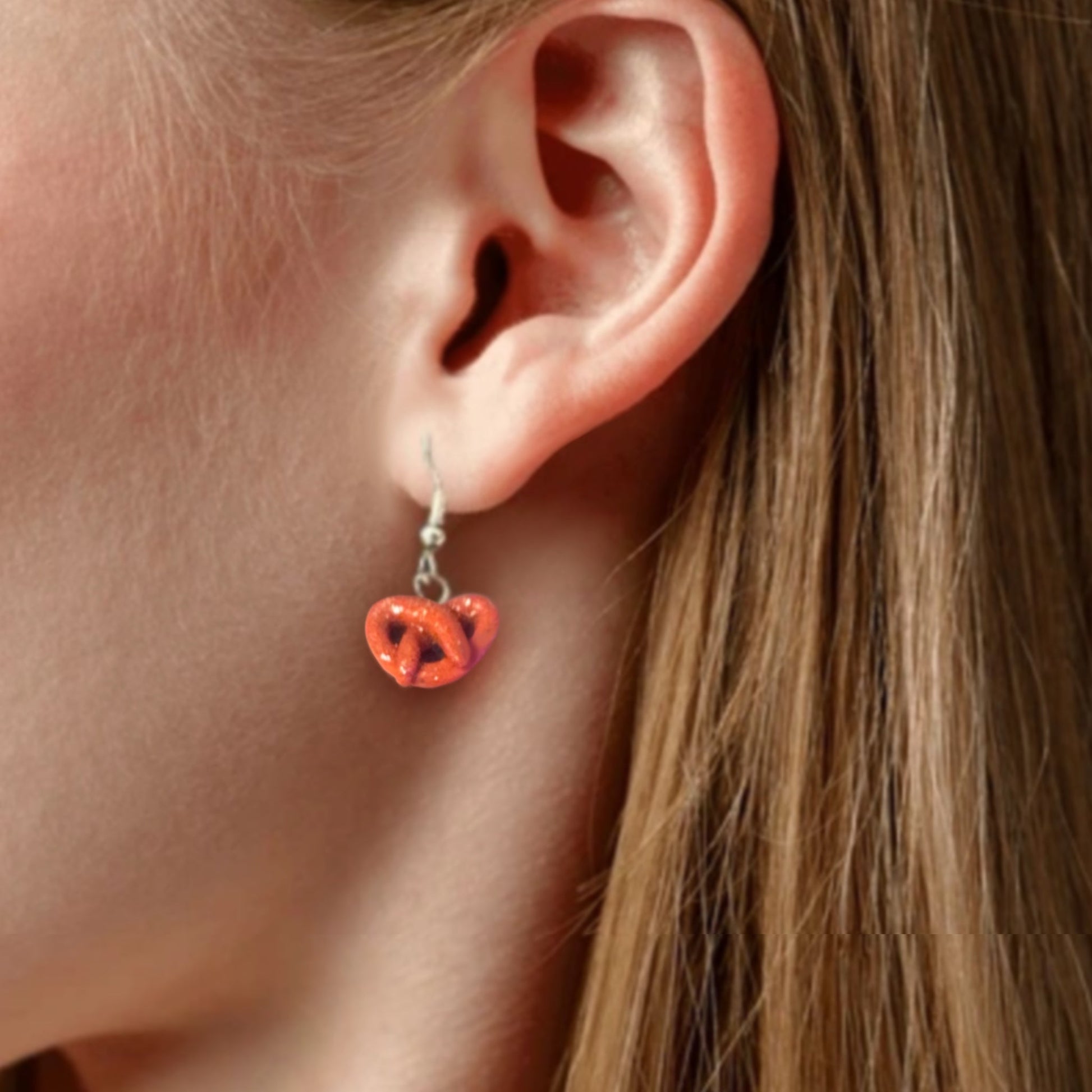 A one-of-a-kind, salty-sweet sparkle for your ears! These fun pretzel earrings are handmade by 9-year-old maker Emma. Each pair features a bold orange base with a glittery twist-perfect for fall festivals, snack-themed parties, or just adding a little shimmer to your everyday look year round.