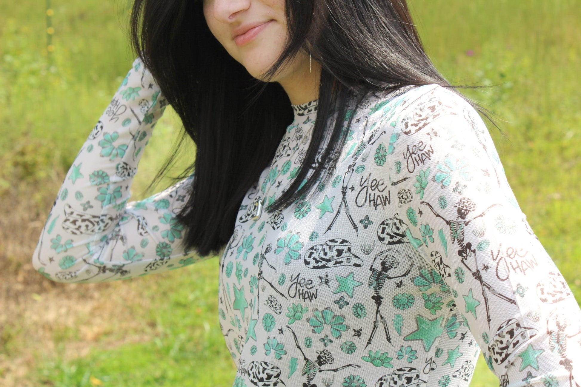 Merigold Kiss Skeleton Yeehaw Mesh Top